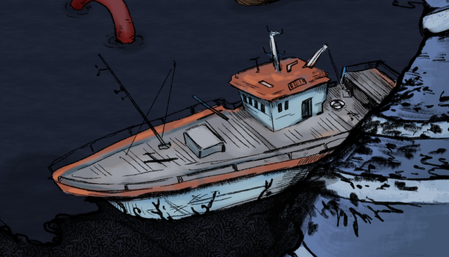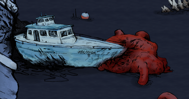 The game begins in a cavernous, dark space, lit only by the lantern you hold. The captain of The Kolonok must search for clues in the wreckage, with only his lantern to fight off the monsters hiding in the darkness.